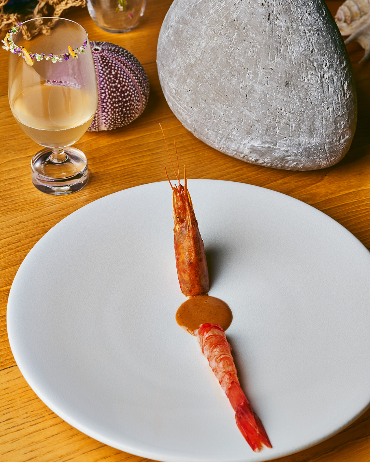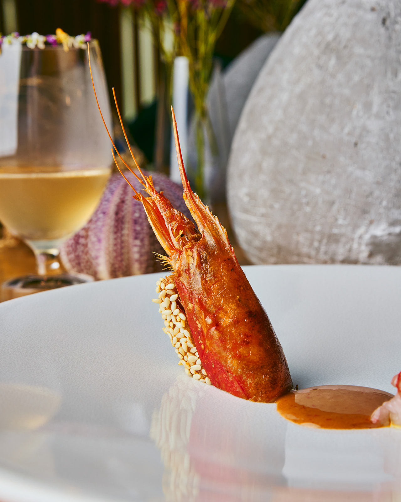 With sustainability at its core the 10 course tasting menu is built around seafood, changing daily dependent on the days catch. Andy works only with small suppliers who own their own boats as this ensures the freshest produce. “Sometimes we don’t know whats coming until it arrives” ….. as if on cue a delivery of glistening red prawns arrive.